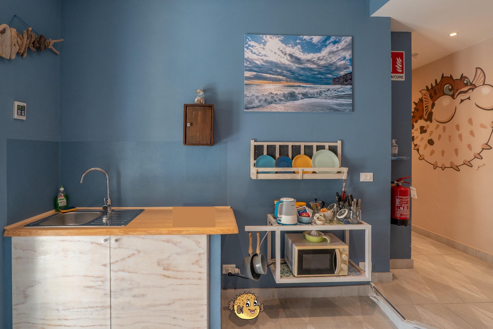The property consists of four double rooms with sea view, each equipped with a mini fridge, Wi-Fi connection, air conditioning, and a private bathroom. The guesthouse is located on the second floor, with no elevator. Bicycle parking is also available. The train station is only 100 meters away. The beach is just 20 meters away.